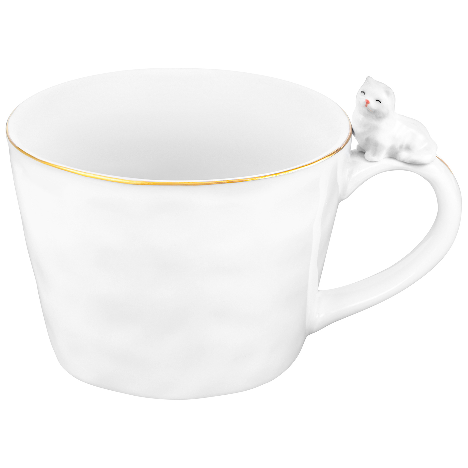 БЫЛО 668 руб! Кружка 300 мл 14*10*7,5 см "Кошка" белый с золотом, фарфор