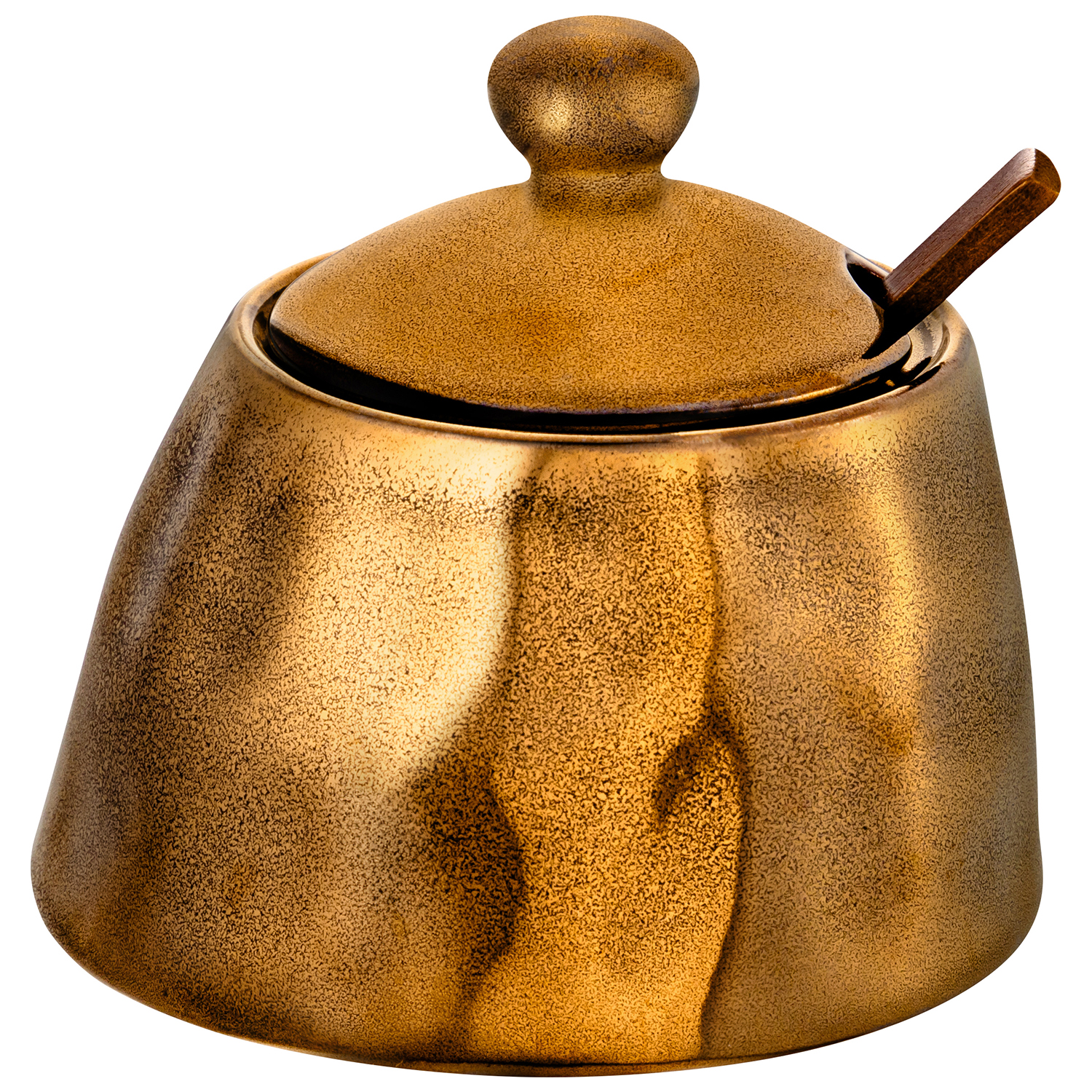 БЫЛО 744 руб! Сахарница 550 мл 13*13*12 см "Бронза", с бамбуковой ложкой