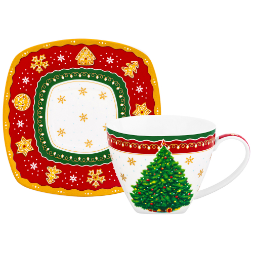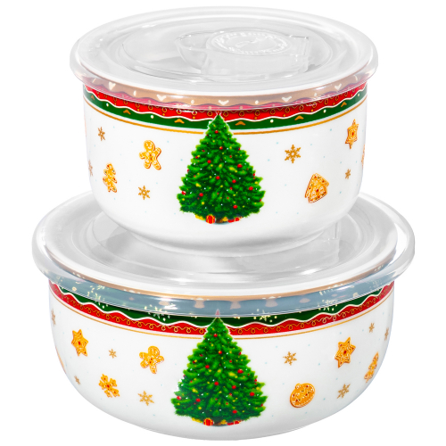 БЫЛО 769руб! Набор 2 салатников 500 мл 13,5*13,5*6,5 см + 260 мл 10,5*10,5*6 см "Новогодняя ёлка" NEW BONE CHINA