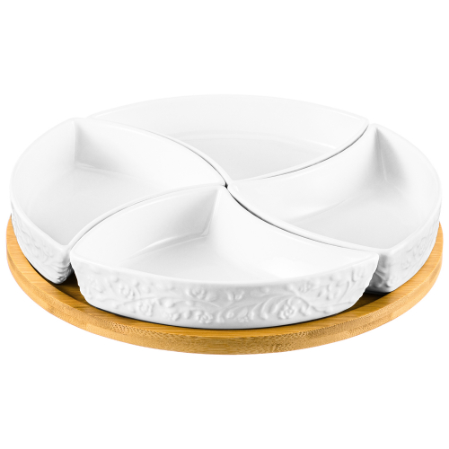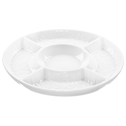 БЫЛО 779 руб! Менажница 26*26*2,5 см "Веточки-цветочки" цельная, 5 секций