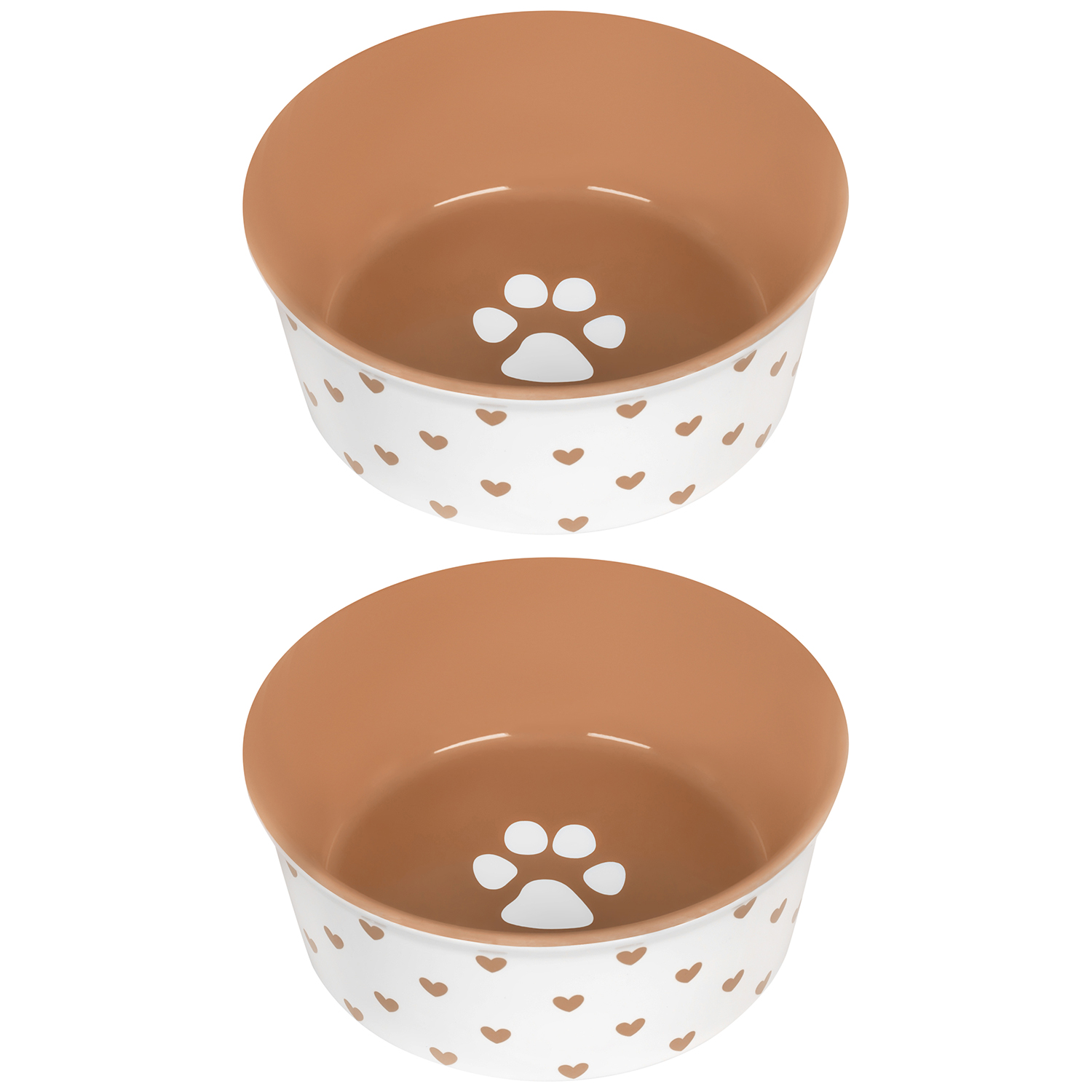 БЫЛО 783руб! Набор 2 мисок для домашних питомцев 400 мл 13,5*13,5*5 см "Лапка на бежевом и сердечки" керамика