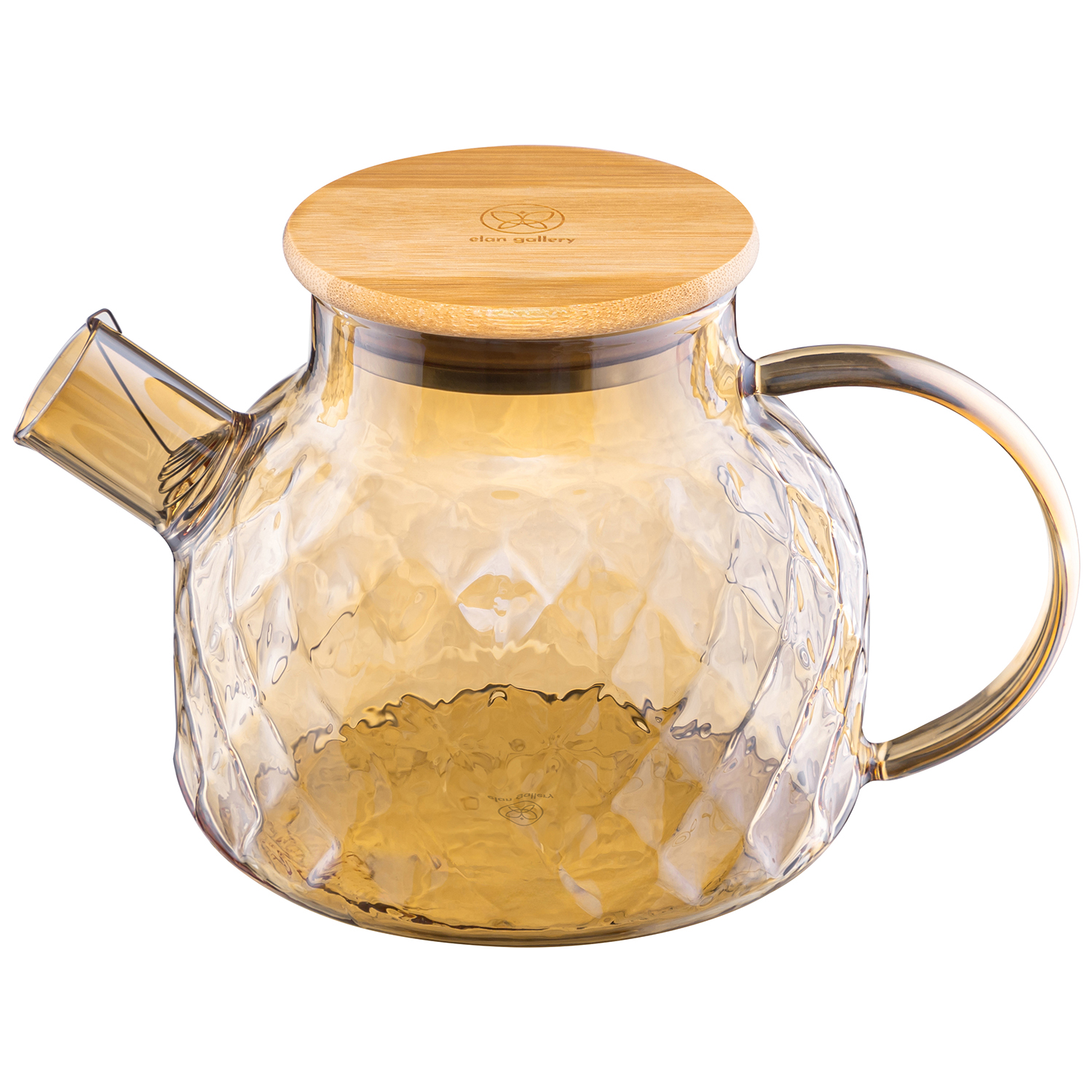 БЫЛО 784 руб! Чайник 1 л 20,5*13,5*12,5 см "Crystal glass" с ситом+бамб.крышк.с метал. дном/с силик.уплот, золото