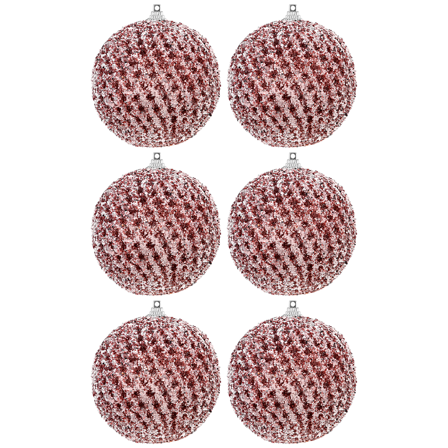 БЫЛО 852 руб! Набор 6 новогодних шаров 8*8 см "Розовый с блестками"