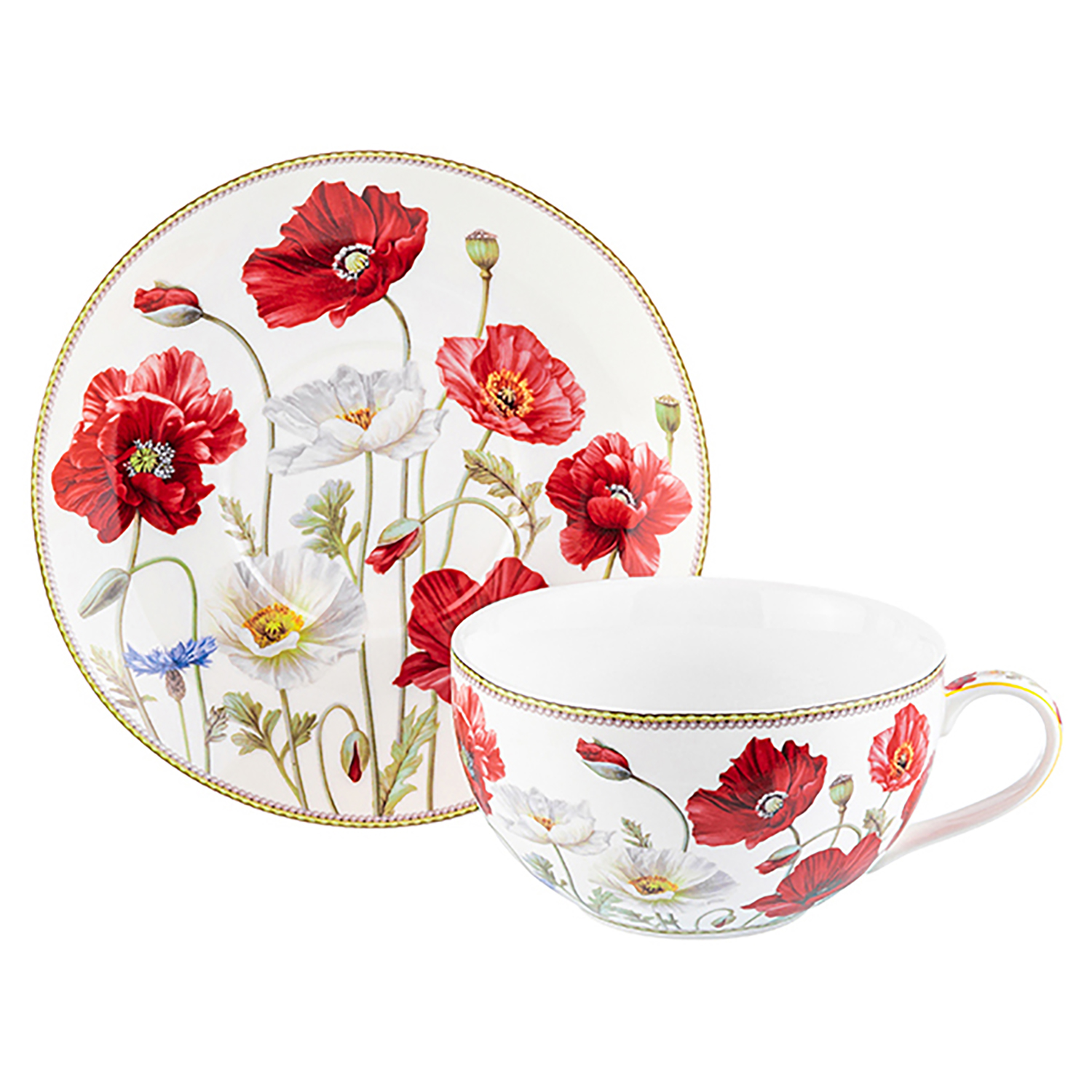 БЫЛО 876 руб! Чашка для капучино + блюдце 350 мл 14*11*6 см "Маки" NEW BONE CHINA