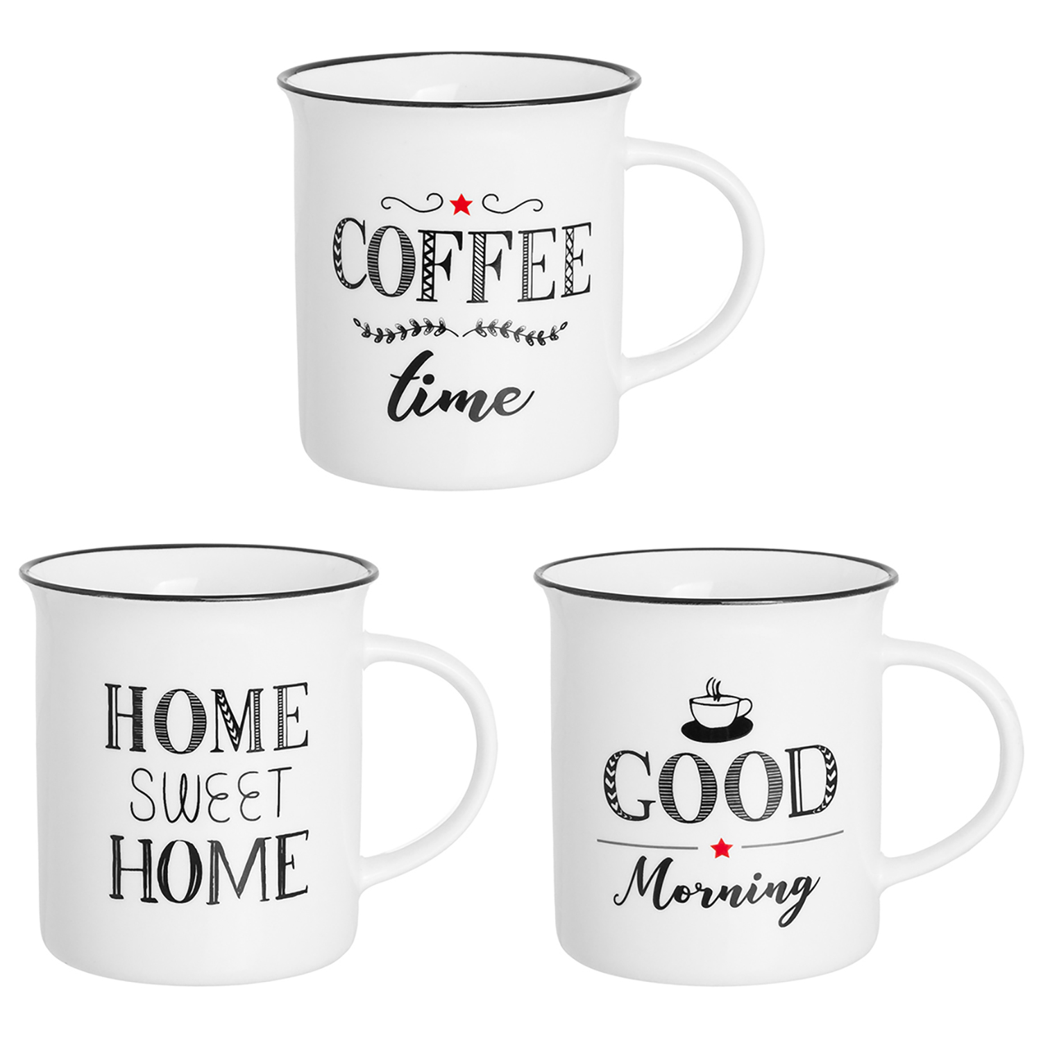 БЫЛО 904 руб! Набор 3 кружек 310 мл "HOME SWEET HOME" + "COFFEE TIME" + "GOOD MORNING" NEW BONE CHINA