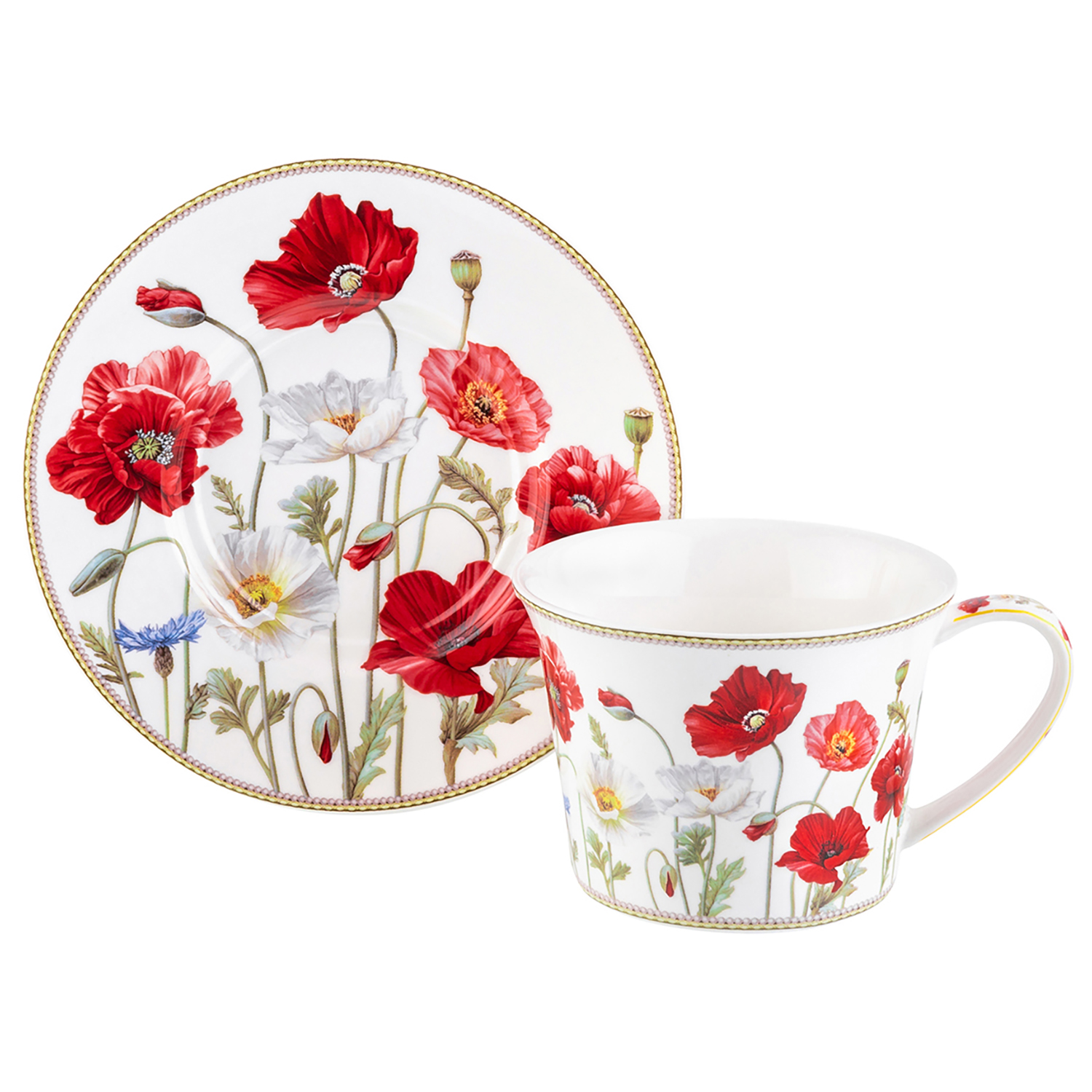БЫЛО 931 руб! Чайная пара 2 пр. 250 мл 12,5*9,5*7 см "Маки" NEW BONE CHINA