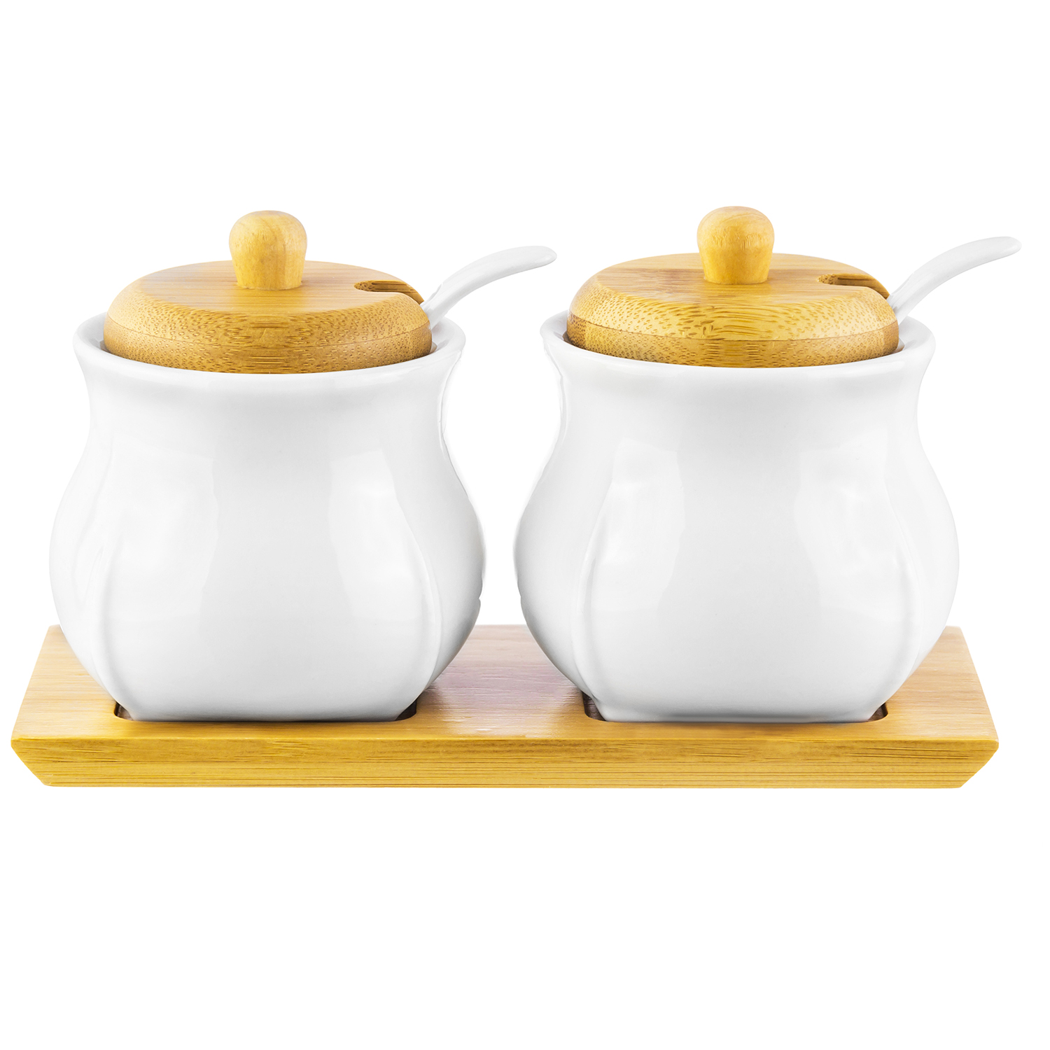 БЫЛО 932 руб! Набор 2 банок д/специй 225 мл 18*8,8*10 см "Тюльпан" + 2 ложки + 2 крышки на дер. подставке