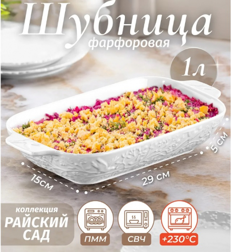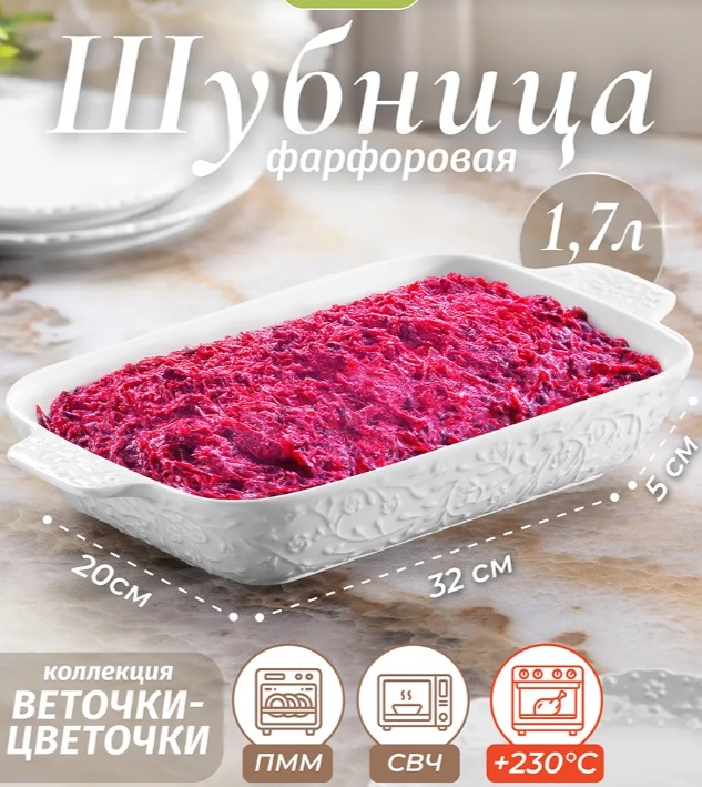 БЫЛО 936 руб! Шубница 1,7 л 32,5*20*5,5 см "Веточки-цветочки"