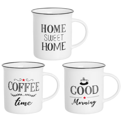 БЫЛО 944 руб! Набор 3 кружек 310 мл "HOME SWEET HOME" + "COFFEE TIME" + "GOOD MORNING" NEW BONE CHINA