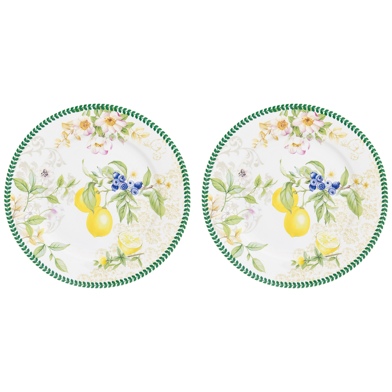 БЫЛО 971руб! Набор тарелок десертных 2 пр. 19*19*2 см "Лимоны" фарфор NEW BONE CHINA