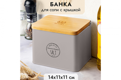 Ёмкость для хранения прямоугольной формы от бренда Elan Gallery 14х11х11 см выполнена из металла, что обеспечивает прочность и долговечность использования. Объём – 1,5 литра. Банка белого цвета украшена надписью "Salt" ("Соль"), имеет откидную крышку из натурального бамбука. Бамбуковая крышечка позволяет сохранить свежесть и аромат продуктов, а также защищает содержимое от пыли и влаги. Квадратная металлическая баночка для сыпучих продуктов позволит эстетично хранить соль на вашей кухне и станет элементом её декора. Контейнер можно использовать для хранения любых продуктов, например, пищевой соды, специй или приправ. Во вместительную баночку уместится большой объём соли, в отличие от солонки, но она займёт немного места на столе и станет украшением вашей кухни. Декоративная баночка позволит создать уют на вашей даче, став элементом загородного интерьера. Не рекомендуется применять абразивные моющие средства. Нельзя использовать в микроволновой печи и посудомоечной машине. Бамбук нельзя замачивать. Поставляется в стильной картонной коробке. Благодаря красочной коробочке не потребуется подарочная упаковка. Ёмкость для сыпучих продуктов со стильным дизайном – это приятный подарок для хозяйки, которая ценит красивый кухонный инвентарь и оригинальную сервировку. Такая посуда поможет создать в доме порядок и уют. В коллекции бренда Элан Галерея представлено много кухонных аксессуаров, столовых принадлежностей и функциональных органайзеров. Выберите товары для дома на свой вкус. /