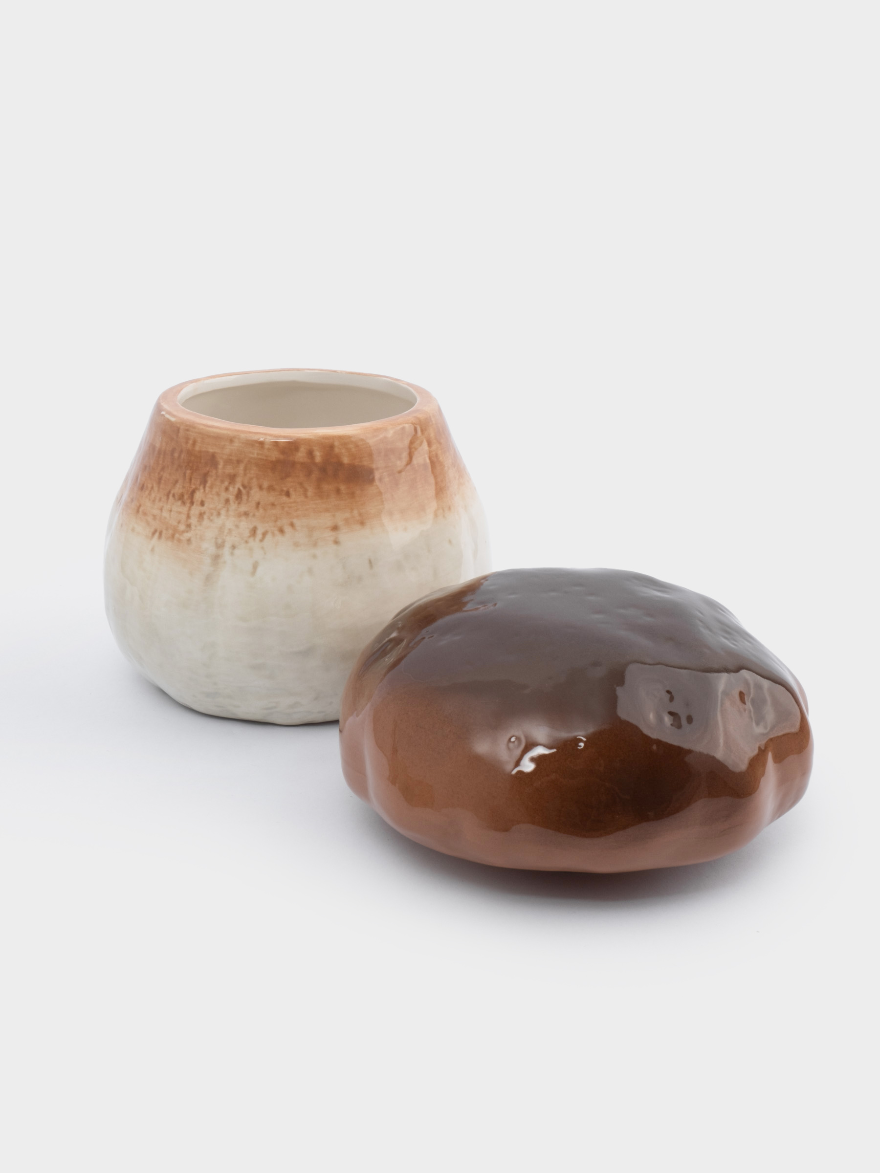 Емкость для хранения, 14x16 см, 780 мл, керамика, молочно-коричневая, Гриб, Autumn forest