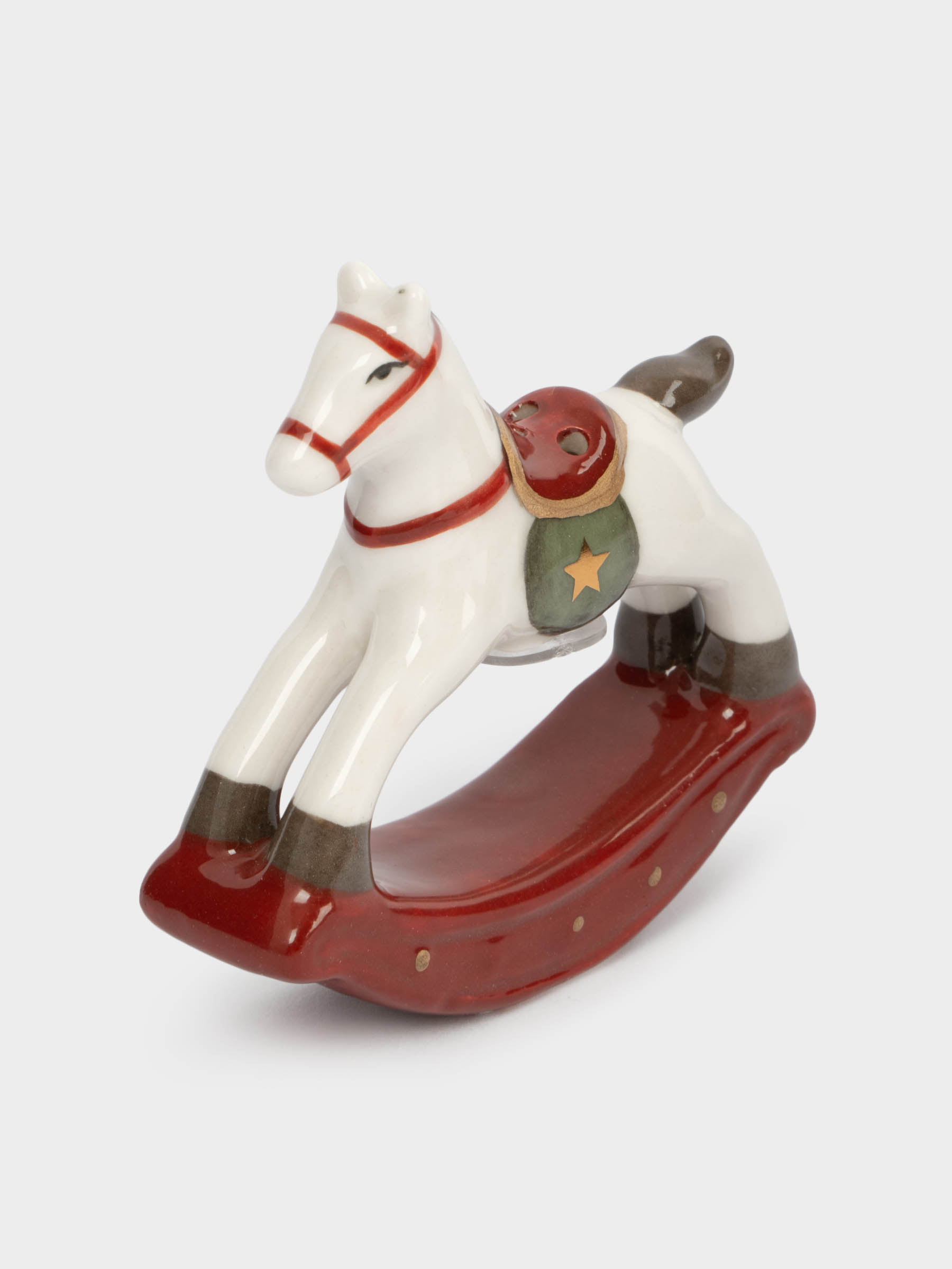Емкость для соли или перца, 7 см, фарфор P, бежево-бордовая, Лошадка-качалка, Bright horse