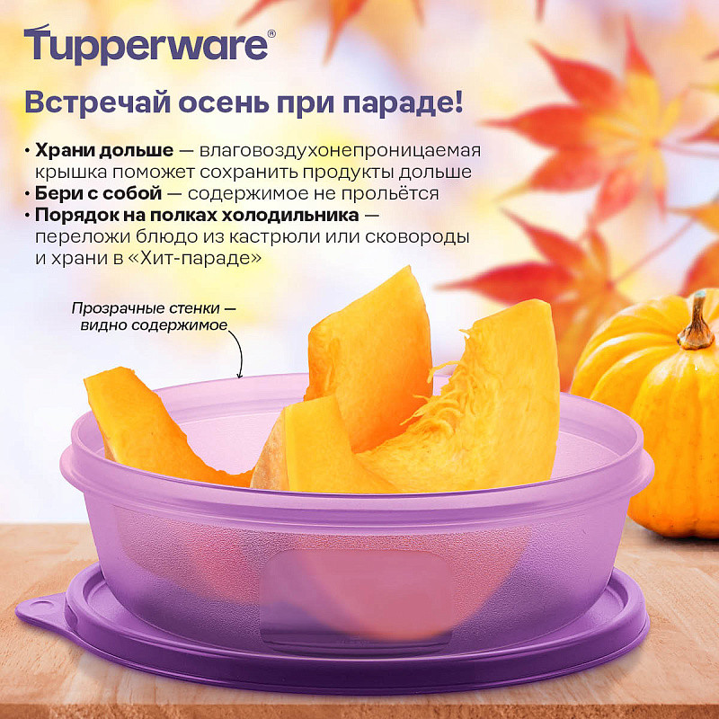 «Хит-парад» объёмом 1 л подходит для хранения нарезанных овощей и фруктов, салатов, в нём также удобно брать с собой порцию еды на обед.