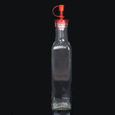 Бутылка стеклянная с носиком-дозатором. Дозатор позволяет наливать ровной, тонкой струйкой. Крышка плотно прилегает и не дает растекаться жидкости, а также не пропускает воздух, не впитывает запахи.