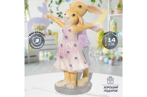 Декоративная фигурка «Зайка-танцовщица» от Elan Gallery преобразит любое помещение. Размер изделия – 10,5х9х16 см. Выполнена из полирезина – современного материала, который славится своей лёгкостью, устойчивостью к влаге и солнечным лучам. Он не выделяет вредных веществ и не имеет запаха. Полирезин легко поддаётся обработке, поэтому изделия из него отличаются своей реалистичностью и проработанной детализацией. Зайка, застывшая в грациозном танцевальном движении, одета в сиреневое платье с золотистыми рукавами и воротничком и в фиолетовые балетные туфельки. К её ноге прижимается крошечный щенок. Настольная фигурка дополнит и освежит антураж любой комнаты. Разместите маленькую статуэтку на полке, тумбочке или рабочем столе, задействуйте в композиции с декоративными веточками и растениями или другими фигурками. Элегантная зайка вдохновит вас своим очарованием и наполнит светлыми и нежными чувствами. Не рекомендуется применять абразивные моющие средства. В коллекции бренда Элан Галерея вы найдёте множество как ярких, так и нежных декоративных украшений – каждый обязательно подберёт сувенир на свой вкус. Они станут чудесным подарком для родных, близких и коллег. Наполните пространство вокруг себя радостью! /