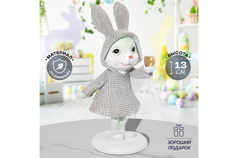 Декоративная фигурка «Зайка в бежевом плаще» от Elan Gallery преобразит любое помещение. Размер изделия – 7,5х5,5х13,5 см. Выполнена из полирезина – современного материала, который славится своей лёгкостью, устойчивостью к влаге и солнечным лучам. Он не выделяет вредных веществ и не имеет запаха. Полирезин легко поддаётся обработке, поэтому изделия из него отличаются своей реалистичностью и проработанной детализацией. Румяная зайка с блестящими глазками одета в бежевый вязаный плащ и протягивает на лапке золотистое сердечко. Настольная фигурка дополнит и освежит антураж любой комнаты. Разместите маленькую статуэтку на полке, тумбочке или рабочем столе, задействуйте в композиции с декоративными веточками и растениями или другими фигурками. Дружелюбная зайка вдохновит вас своим очарованием и наполнит светлыми и нежными чувствами. Не рекомендуется применять абразивные моющие средства. В коллекции бренда Элан Галерея вы найдёте множество как ярких, так и нежных декоративных украшений – каждый обязательно подберёт сувенир на свой вкус. Они станут чудесным подарком для родных, близких и коллег. Наполните пространство вокруг себя радостью! /