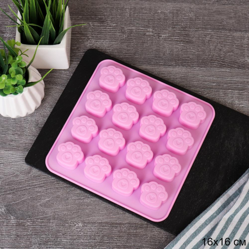 Форма для конфет мармелада и льда 16 ячеек силиконовая Лапки/16х16х1.6 см/ R-112 /уп 120/