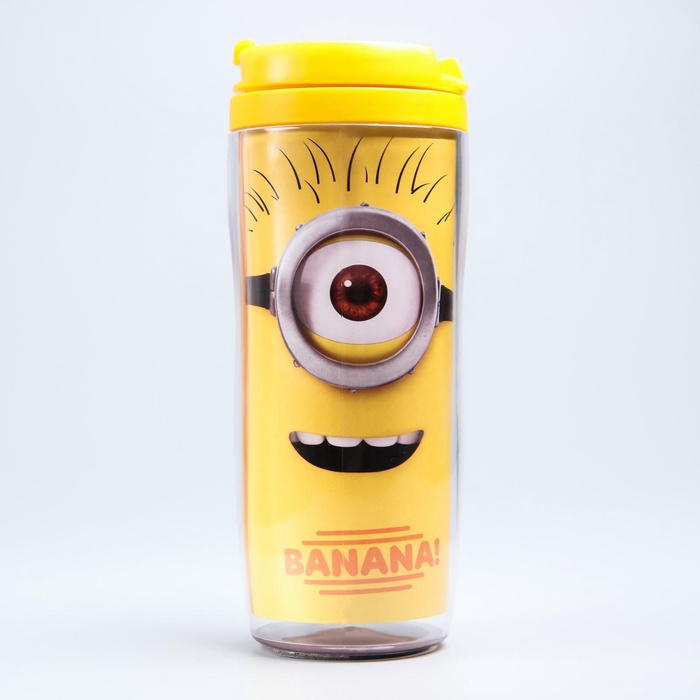 Термостакан «Банана» — яркий, практичный и заряженный позитивом! Объём 350 мл, двойные стенки и герметичная крышка с откидным клапаном надолго сохраняют напиток горячим или холодным. На корпусе — сочный принт миньона в весёлых очках, вдохновлённый вселенной «Гадкий я», который поднимает настроение с первого взгляда. Изготовлен из безопасного пластика, не впитывает запахи и легко моется. Идеален для школы, прогулок, поездок или офиса. Пусть каждый глоток будет таким же сладким, бодрящим и радостным, как любимый фрукт миньонов!