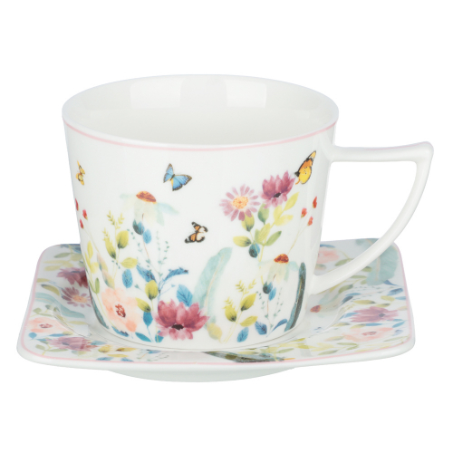 Набор чайный 2пр 250мл Цветы фарфор, подарочная упаковка