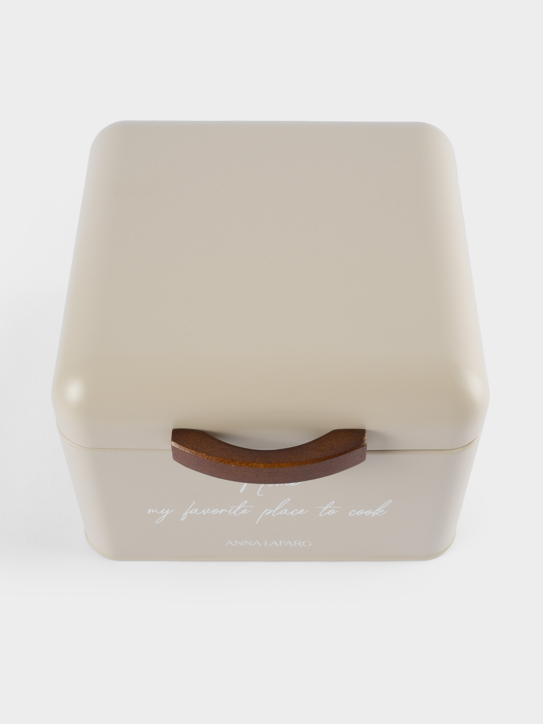 Хлебница, 20х20х14 см, металл/дерево, квадратная, бежевая, Retro