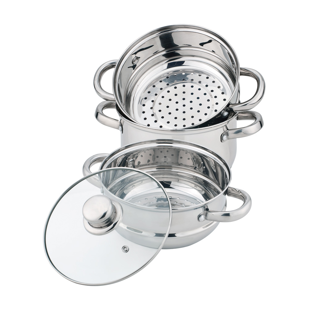 КАСТРЮЛЯ-ПАРОВАРКА AGNESS 3-Х ЯРУСНАЯ, 4 ПРЕДМЕТА, СЕРИЯ "CLASSIC" ДИАМЕТР=18СМ, 2,5Л (КОР=4ШТ.)