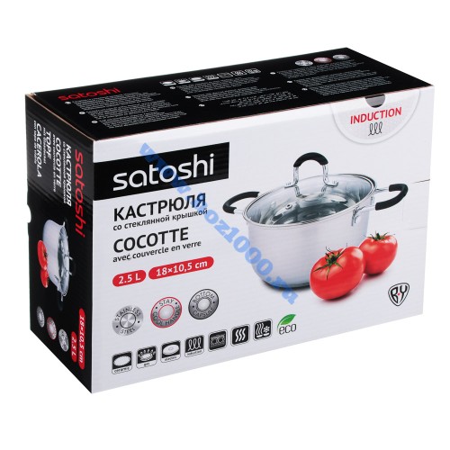 Кастрюля "Satoshi Альбер" 18х10,5см. 2,5л. со стекл.крышкой, индукция №822213