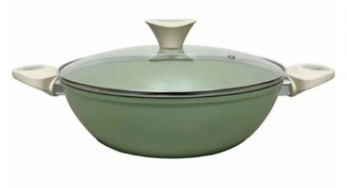 Кастрюля со стеклянной крышкой Ø 28 см / 5,56 л. Толщина стенки 2,5 мм, дна 3 мм, высота 11,5 см. Внутри мраморное антипригарное покрытие, снаружи мраморное жаропрочное покрытие. Ручки из нержавеющей стали. Подходит для использования на всех типах плит и для чистки в посудомоечной машине. Состав: кованый алюминий.