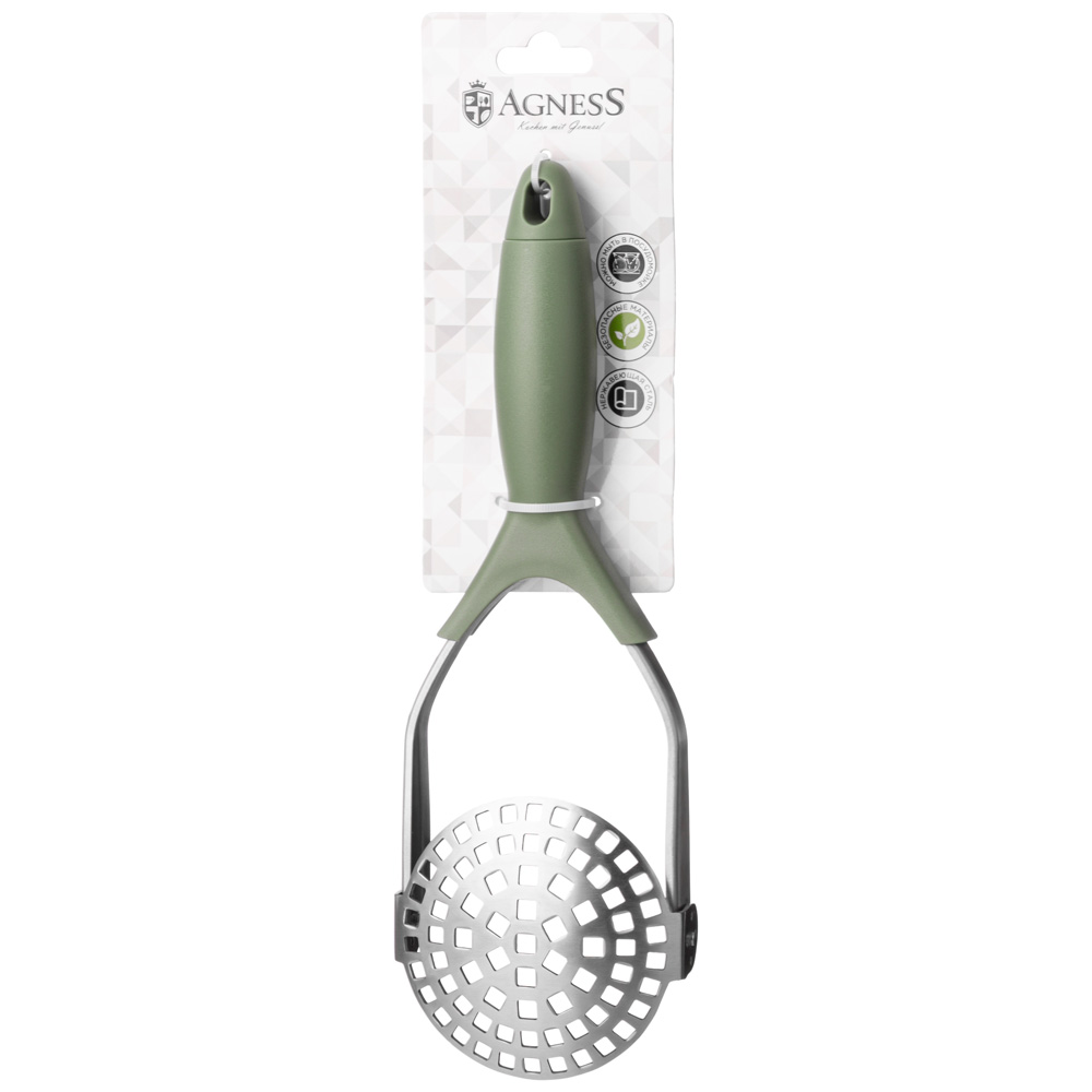 КАРТОФЕЛЕМЯЛКА для приготовления пюре быстро и качественно. Картофелемялка металлическая не впитывает запахи, легко моется, удобна и практична в использовании. Мялка имеет литое соединение, за счет чего изделие очень прочное и долговечное. За прессом легко ухаживать, так как его можно мыть в посудомоечной машине. Эта кухонная утварь для картофеля очень нужная вещь среди кухонных принадлежностей.Для удобного хранения ручка толкушки снабжена петелькой и ее можно подвесить на крючок.