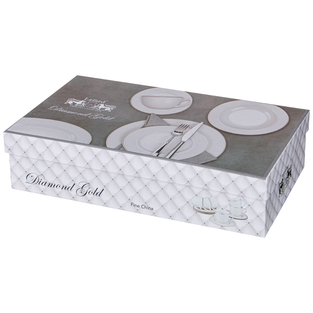 TM Lefard коллекция "Диаманд Голд" - посуда и предметы сервировки из белого фафора с золотой каймой. Изделия выполнены из упрочненного фарфора. Стильная упаковка. Идеальная сервировка праздничного и ежедневного стола. Отличный подарок! Продукция сертифицирована и безопасна для контакта с пищевыми продуктами. Нельзя ставить в микроволновую печь, не рекомендуется мыть в посудомоечной машине.