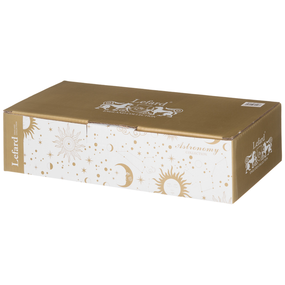 TM LEFARD представляет элегантную коллекцию “Astronomy” из белоснежного упрочненного фарфора. Изящное изображение солнца, мерцающие звезды, созвездия и облака создают атмосферу тепла и уюта, превращая обычное чаепитие в момент вдохновения. Коллекция представлена чайными и кофейными парами, кружками, чайником и сахарницей, блюдом для сладкого. Красочная упаковка, прекрасный подарок для мечтателей и романтиков, любящих все необычное и прекрасное. Посуда прошла сертификацию и подходит для контакта с пищевыми продуктами, легко моется в посудомоечной машине и может использоваться в микроволновой печи.