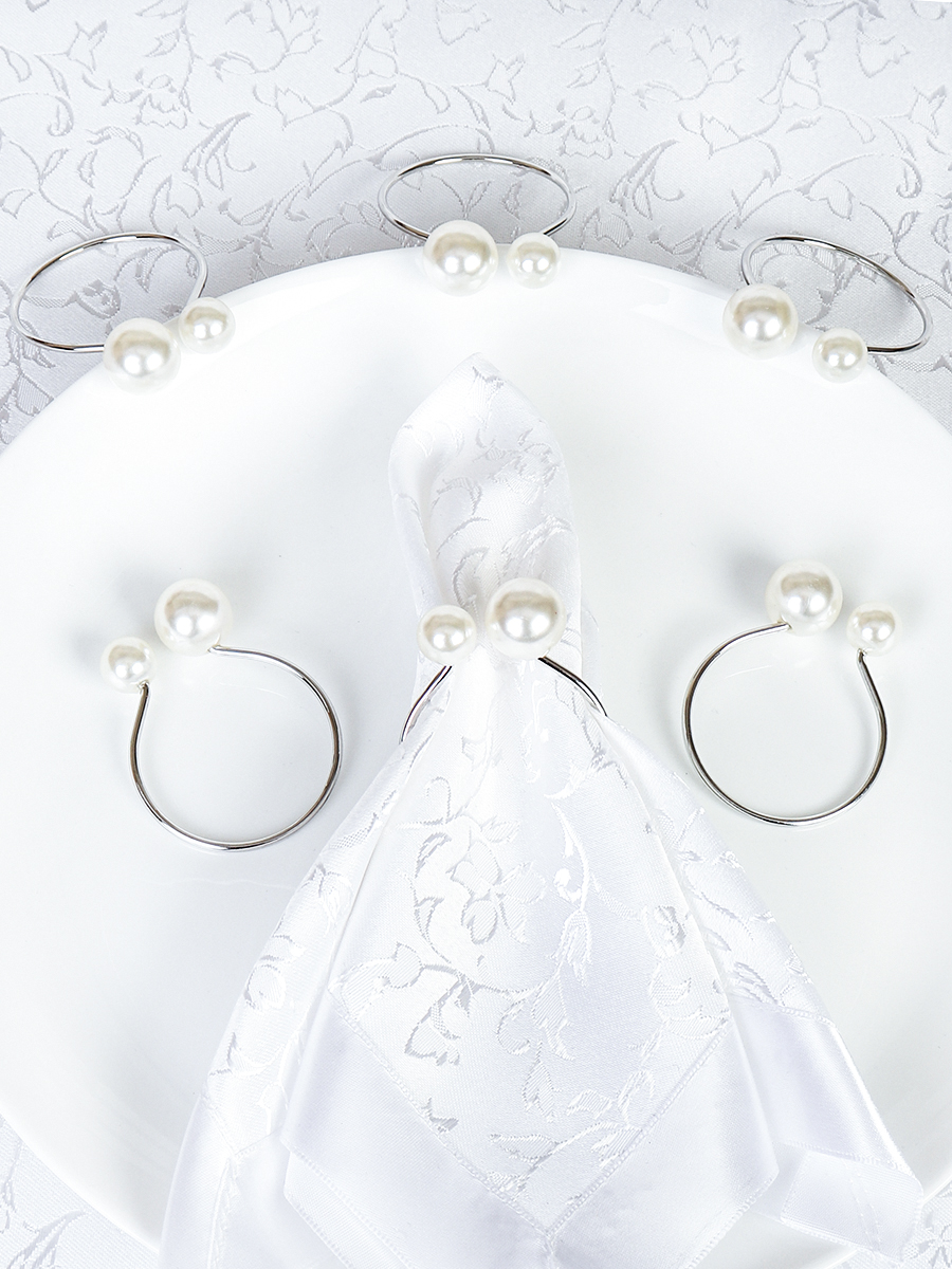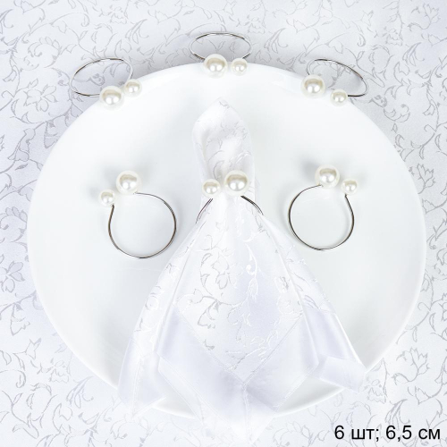 Кольца для салфеток 6 штук Бусины Серебро / JG03-3 /уп 200/ 8 марта/ подарок для женщины