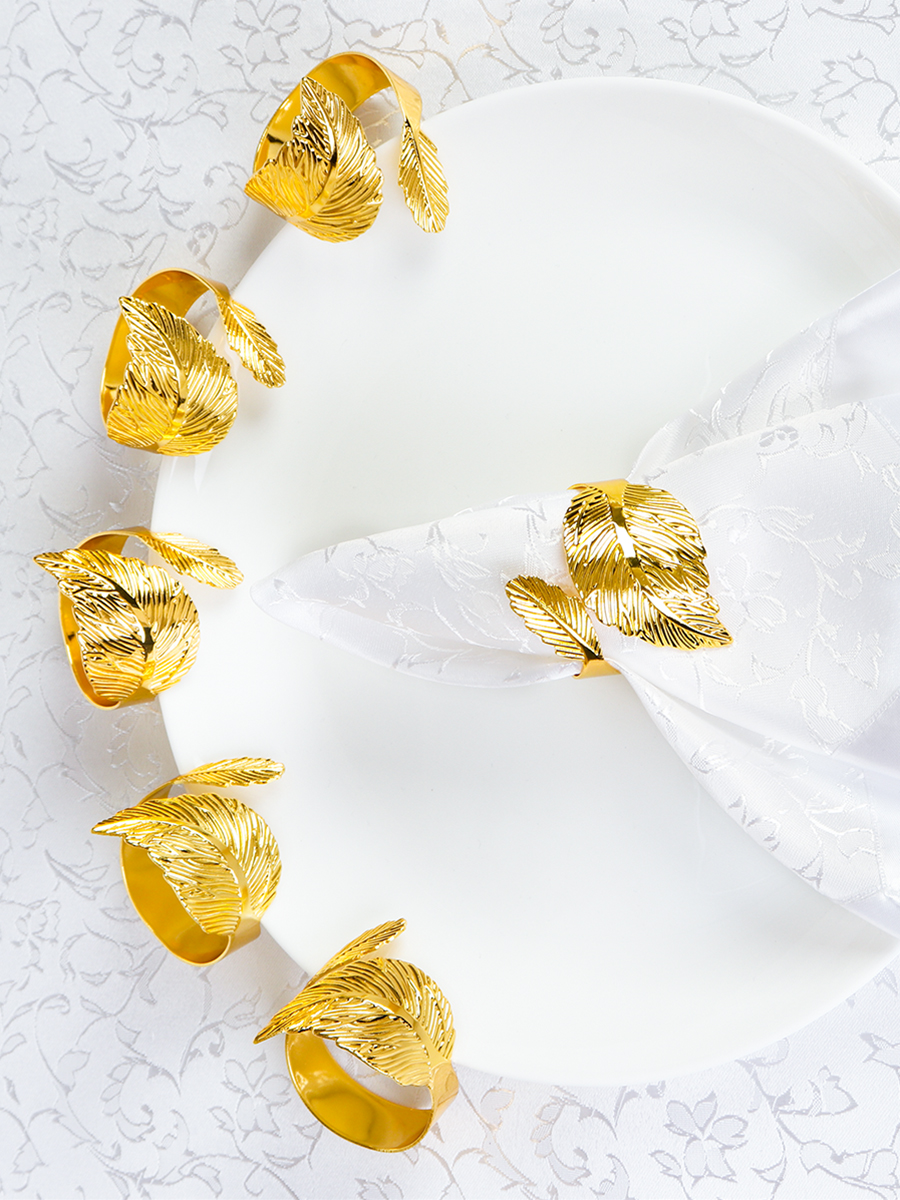 Кольца для салфеток 6 штук Лавр Золото / JG12 /уп 50/ 8 марта/ подарок для женщины