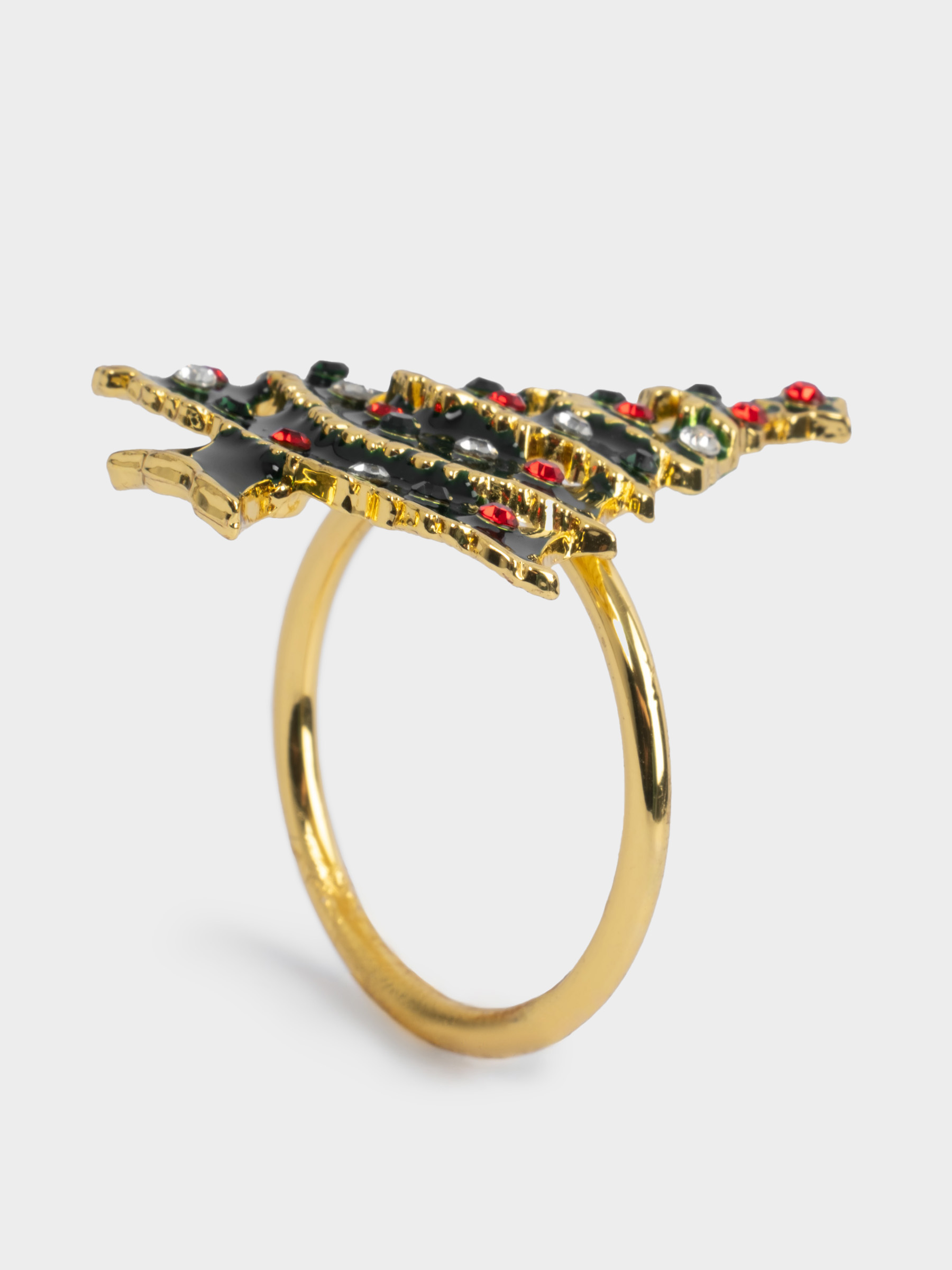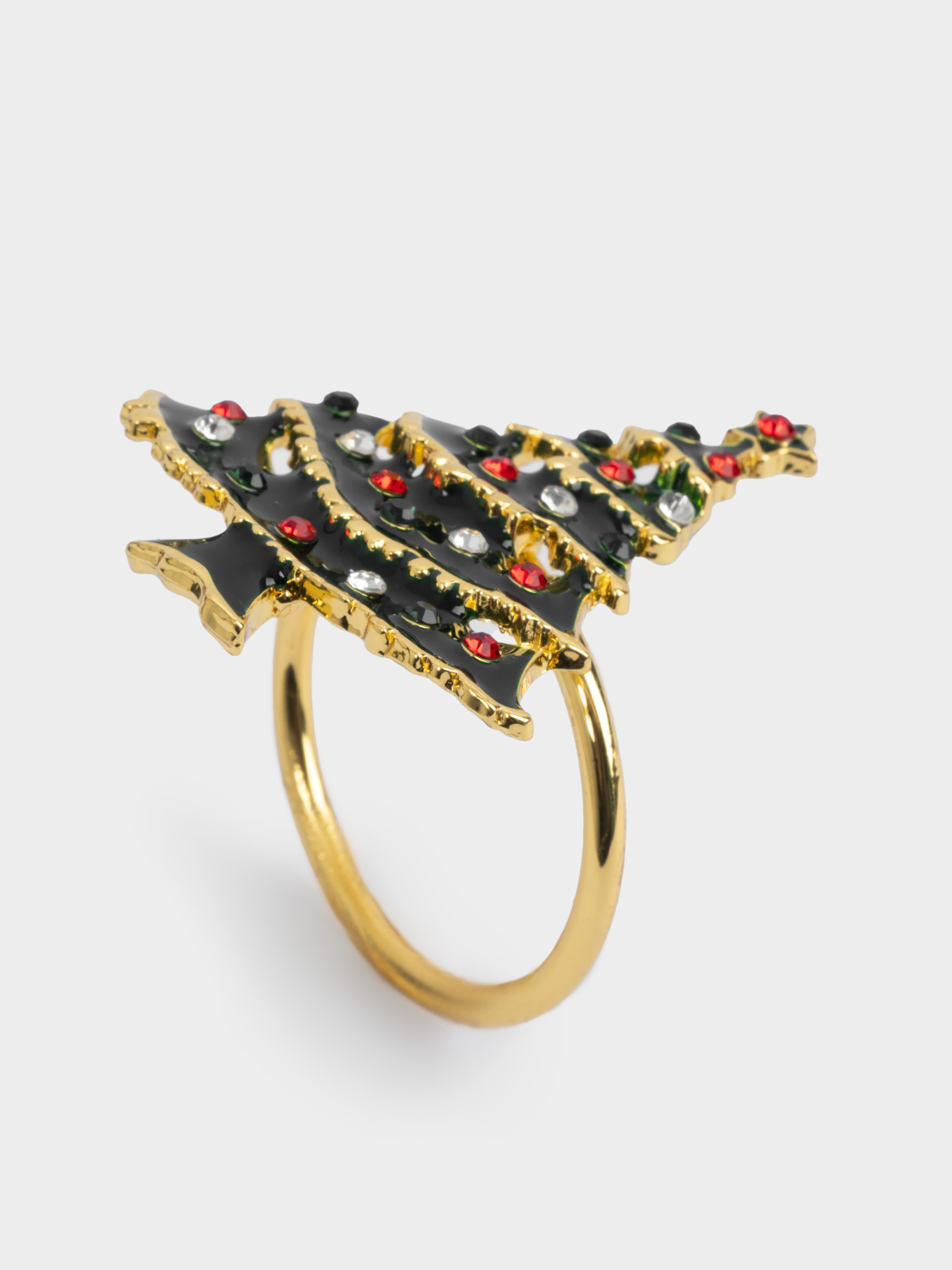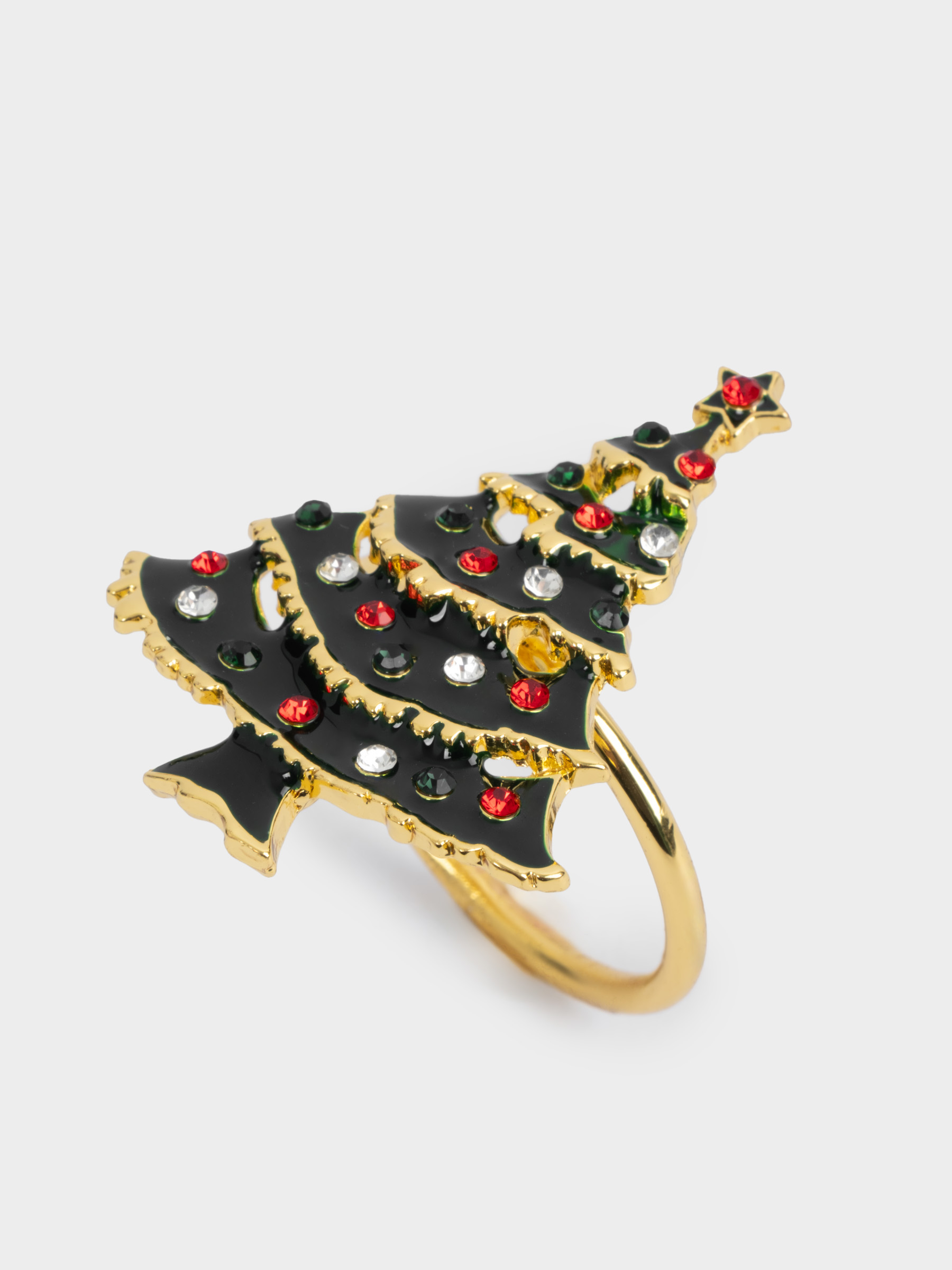 Кольцо для салфеток, 6 см, металл/стразы, золотистое, Новогодняя ель, New year
