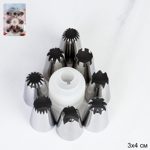 Кондитерские насадки большие 8 штук с адаптером /основание 30 мм / LO-B900 /уп 144/