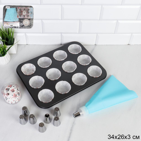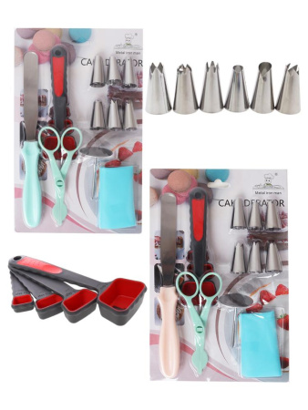 Кондитерский мешок с насадками, гвоздь, шпатель, ножницы, мерные ложки /основание 20мм / 149NA-10-22 /уп 144/ ПРОМО АКЦИЯ (Белый)