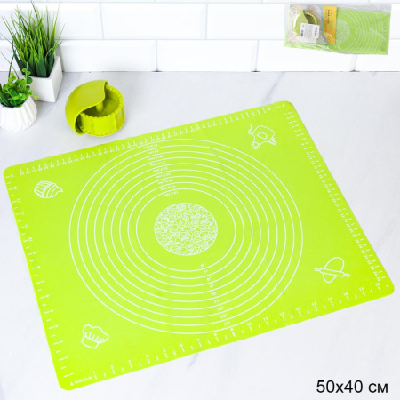 Кондитерский набор Силиконовый коврик 50х40 см и ролик для теста / GY-633-B /уп/ Зеленый