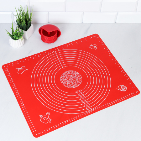Кондитерский набор Силиконовый коврик 50х40 см и ролик для теста / GY-633-R /уп/ Красный