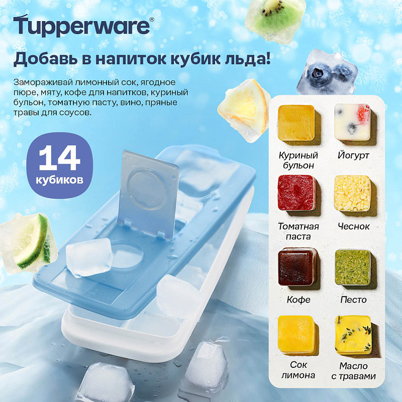 Контейнер можно использовать для замораживания небольшого количества бульона, соусов, соков, яичных белков, детского питания, свежей зелени, чая или кофе.