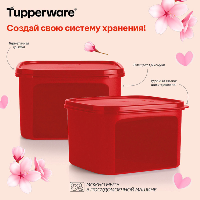Контейнер вмещает 1,5 муки, 1 кг сахара.
