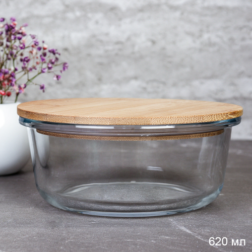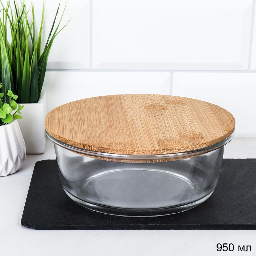 Контейнер круглый крышка бамбук 950 мл стекло / C950 /уп 24/
