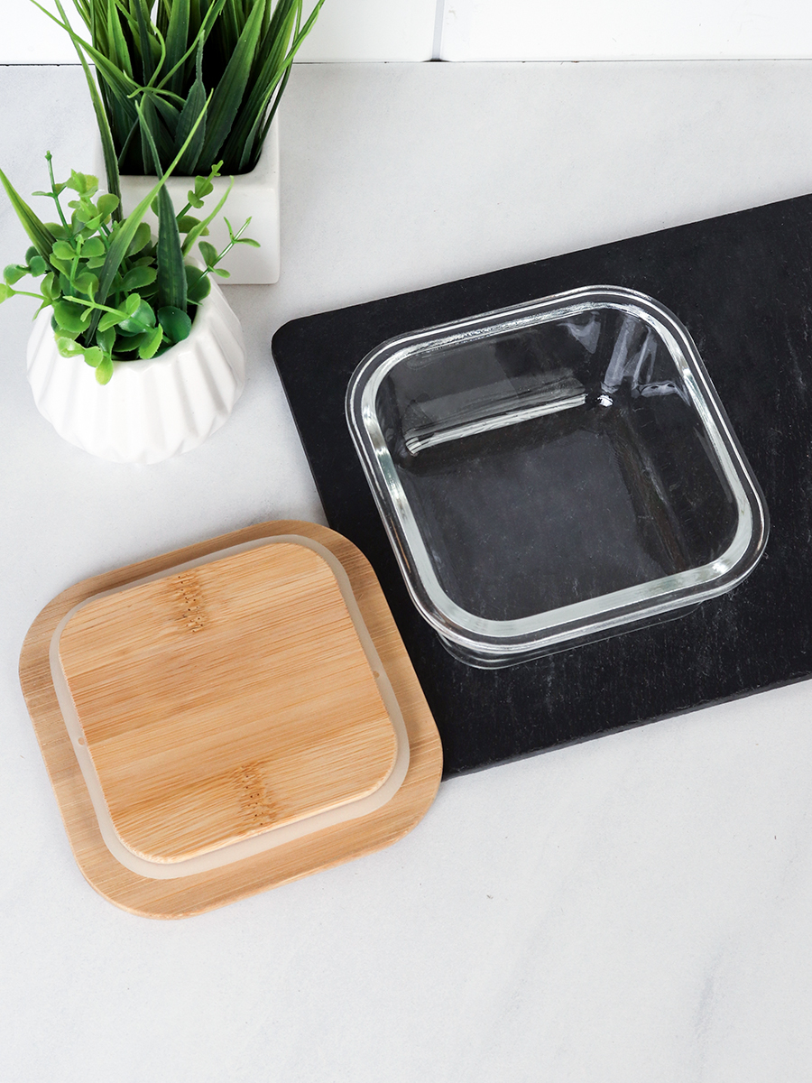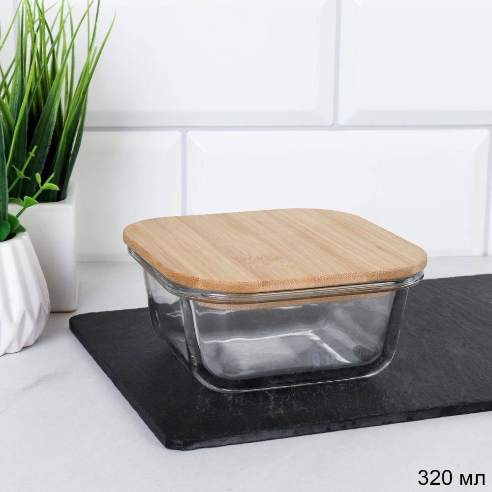 Контейнер квадратный крышка бамбук 320 мл стекло / K320 /уп 48/