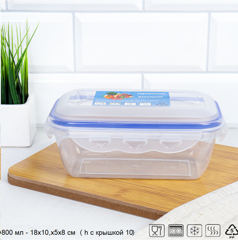 Контейнер Люкс прямоугольный 800 мл / CP1021B /уп 12/ 751824 ДОП СКИДКА НА КОРОБ 2%