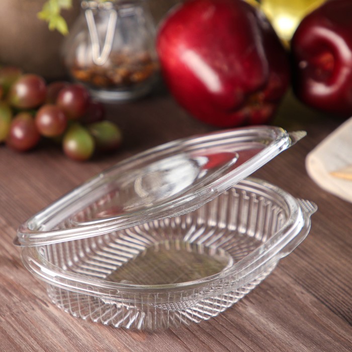 Контейнер одноразовый с неразъёмной крышкой ПР-РКС, 250 мл, пластик, 15.9×13×3 см, прозрачный