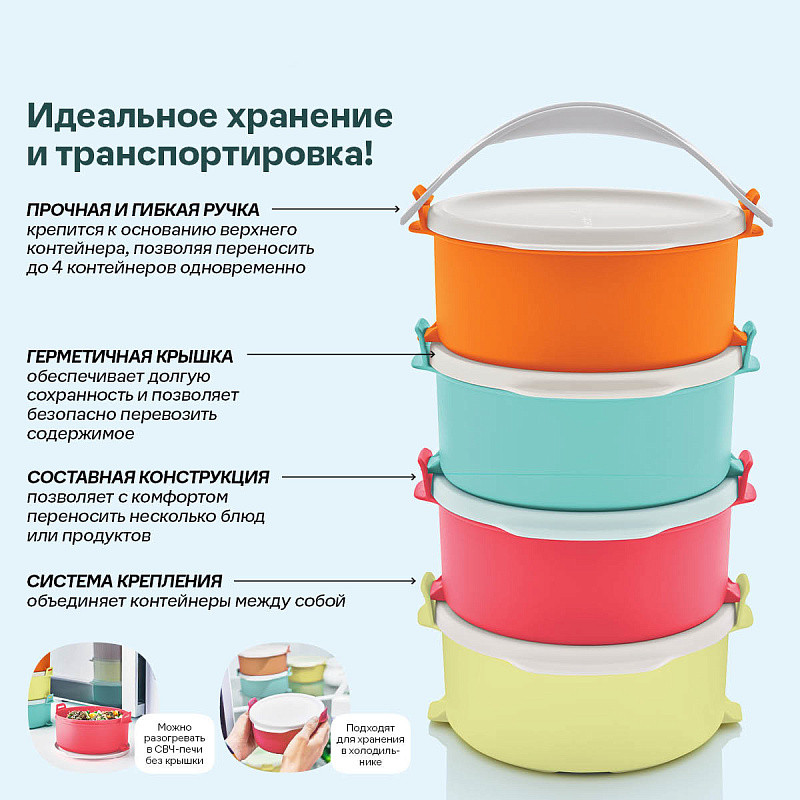 Контейнеры с ручкой для комфортной транспортировки продуктов!