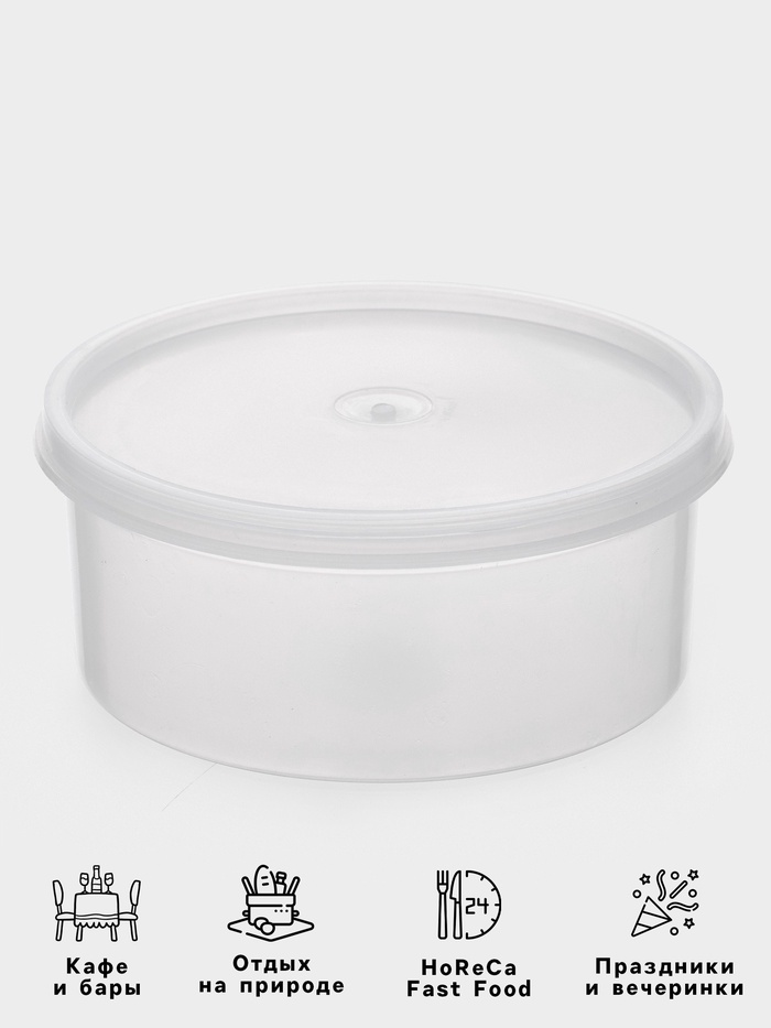 Контейнер пищевой, 450 мл, с герметичной крышкой, d=12.5 см, h=5.5 см, пластик