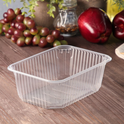 Контейнер одноразовый с неразъёмной крышкой, пластик, 1 л, 17.5×14.9×7.9 см, прозрачный