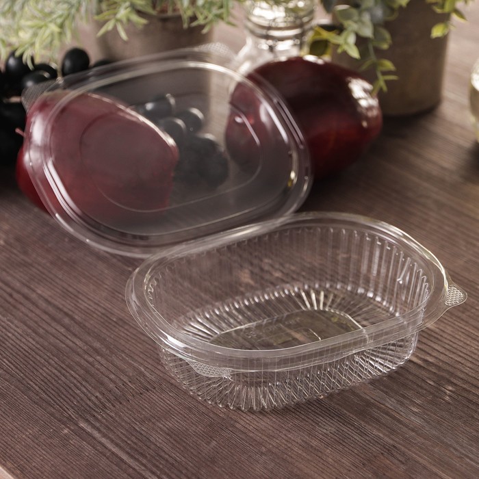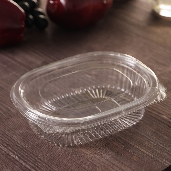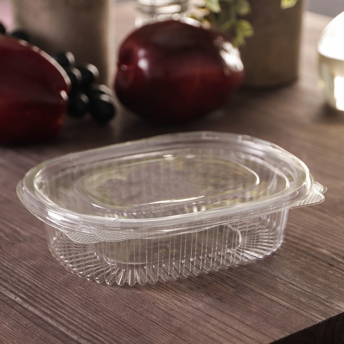 Контейнер одноразовый с неразъёмной крышкой ПР-РКС, 350 мл, пластик, 15.9×13×4 см, прозрачный