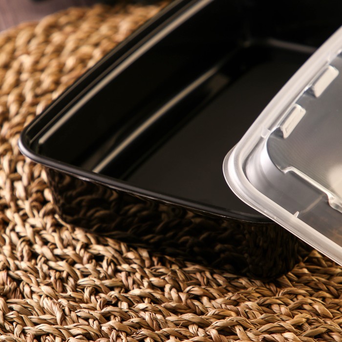 Контейнер одноразовый с крышкой, 830 мл, пластик, чёрный