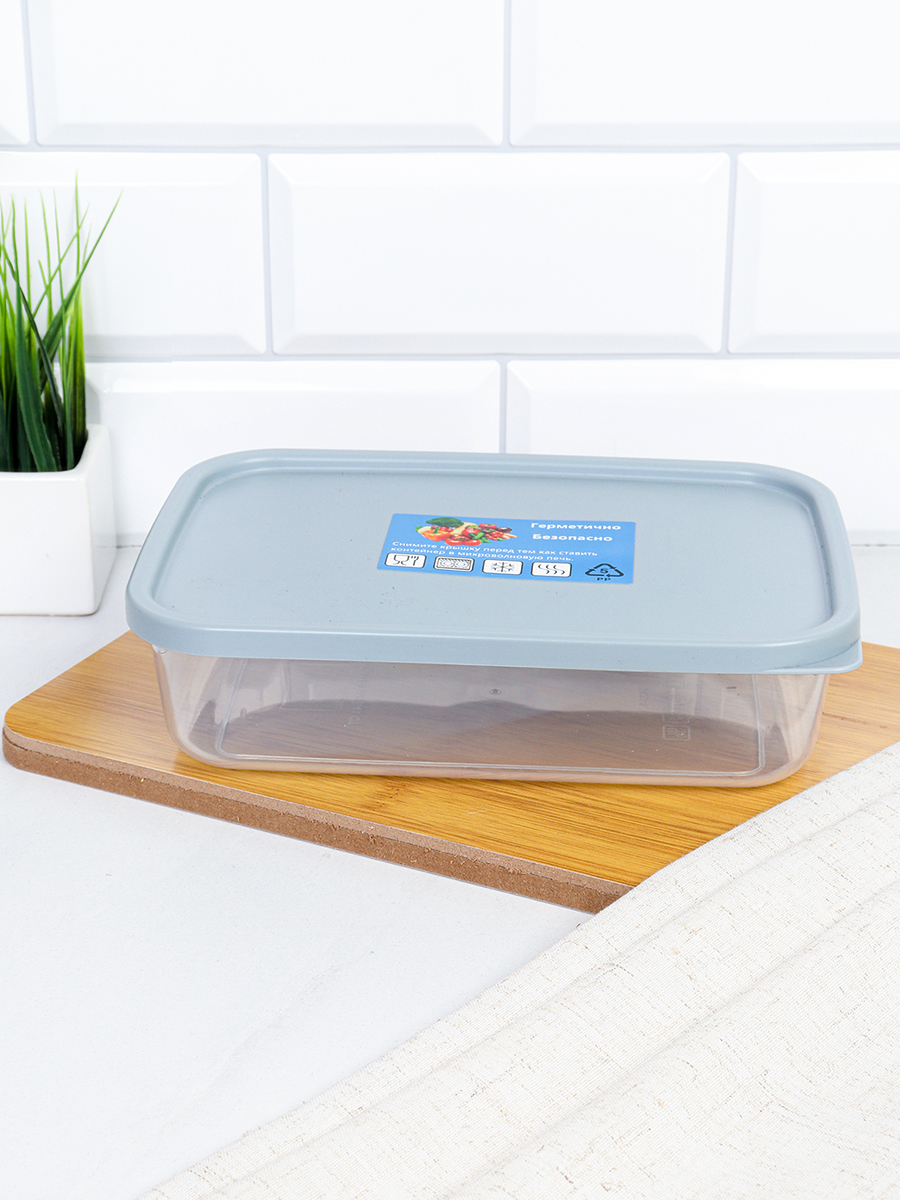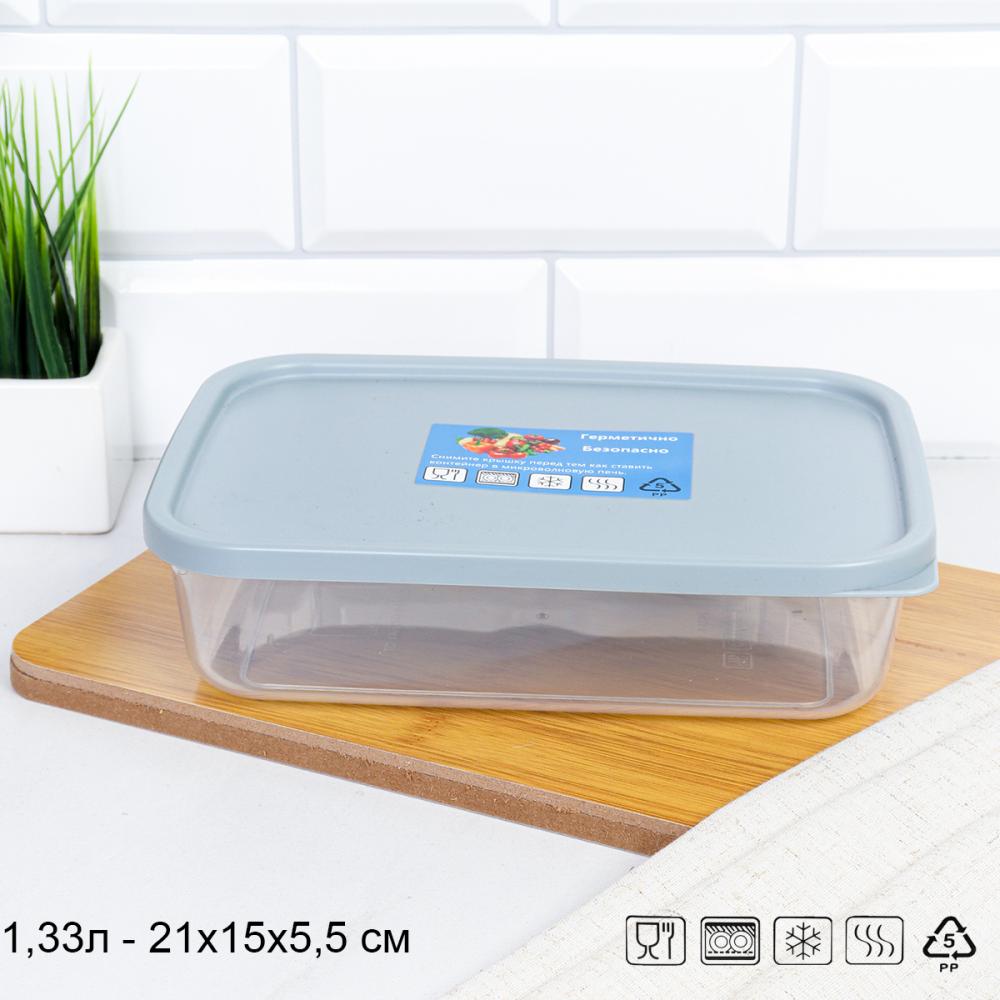 Контейнер прямоугольный 1330 мл серый / 90434 /уп 12/96/ ДОП СКИДКА НА КОРОБ 3%
